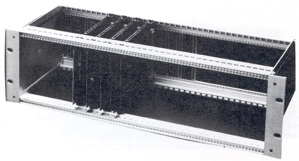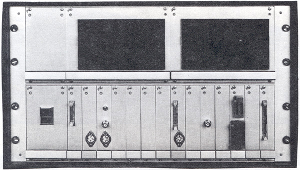 The system 4A is housed in a double height rack with capacity for up to 14 Eurocards. The mimimum system has as standard two floppy disk drives, power supplies, card frame buffered 14 slot backplane, 6502 CPU, VDU interface, 16K RAM and disk controller. A DOS(Disk Operating System) controls both disk drives and a disk with utilities programs including disk copy is supplied with each system. Customers may specify U-MEM in place of the Acorn 8K RAM card at no extra cost. The system illustrated has the additional audio cassette interface, 32K bytes of RAM and serial and parallel interfaces using the versatile interface board. Please note that a keyboard is usually required for this system. Printers and TV monitors suitable for this system are listed elsewhere in sections 10 and 11. |