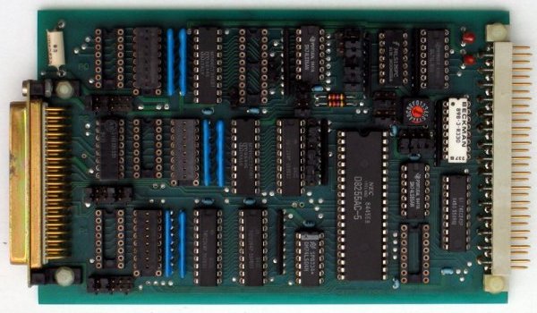 This floppy disk controller is quite an update from the original PDM-FDC card. This is an 8085 based card with a WD2797 FDC. The only board explicitly labeled Indata, the company that took over after the DAI bankrupcy. |