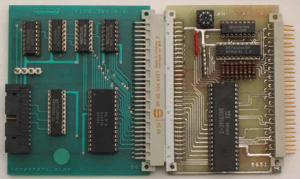 A card contraption based on a 32 byte FIFO. Both parts have the logo "Transimate", at one time a