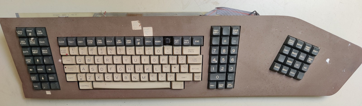 This S-100 bus, multi-processor CP/M system from the early 1980's seems to be targeted at some sort of desktop publishing (based on the extra keys on the key-board). It is multi-processor in the sense that each I/O-board had its own Z80 CPU and DMA-accessible 16 kByte RAM.