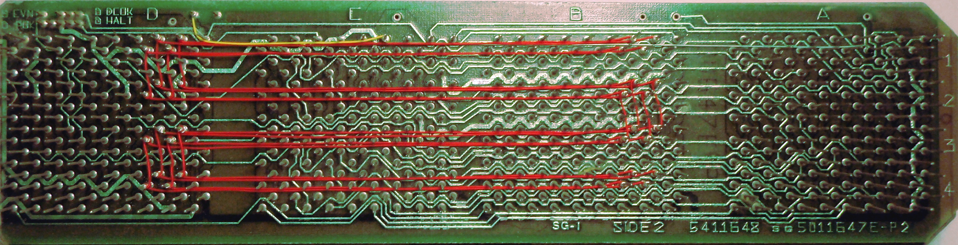 The DEC connecting blocks soldered to many of the backplane circuit boards have wire wrap posts for solder pins. This provides the ability to add custom wiring to bring additional signals to the backplane, or to borrow signals for other uses.