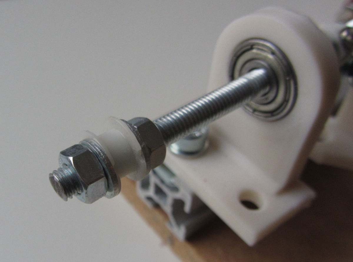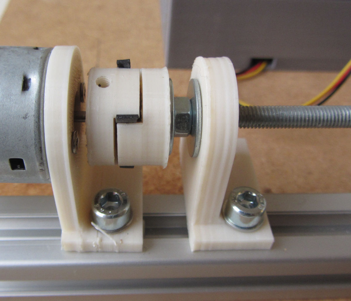 Most 3D-printed parts are printed with ASA, but PETG would probably also work. The coupler should reduce vibrations due to mis-alignment between motor and axis. Further reduction is achieved by thin rubber sheet between coupler parts. Bycicle inner tire has the proper thickness. The axis mount has a 5x16x5 mm bearing. The axis is M5 metric thread. |