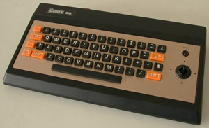 A contemporary of the C64. One of the main selling arguments was that the processor was used in the space shuttle. An RCA 1802. Note the small funny joystick right of the keys.