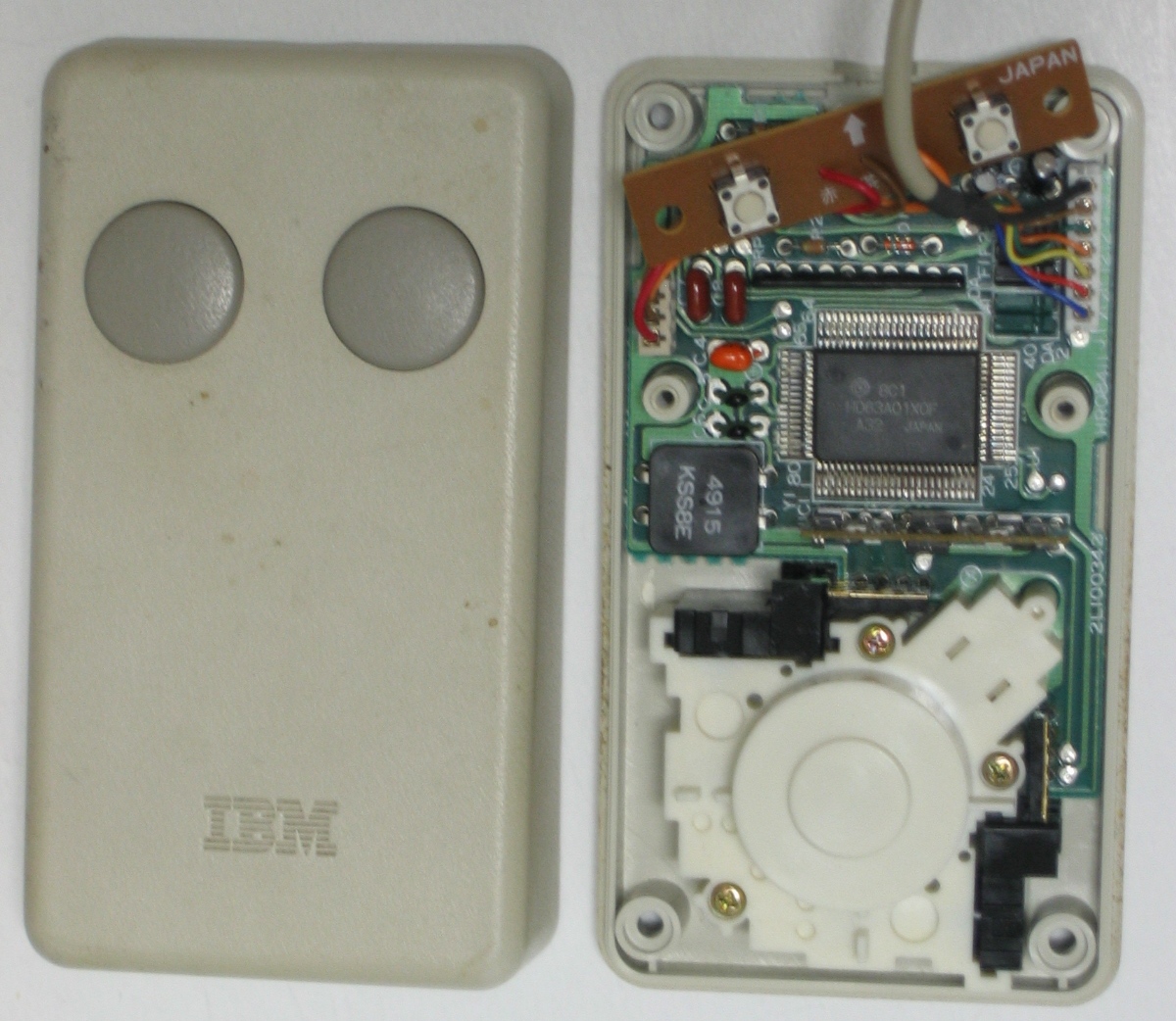 The mouse interior. A complete HD6303A01XOF processor (derived from the 6801) and a propriatairy protocol.