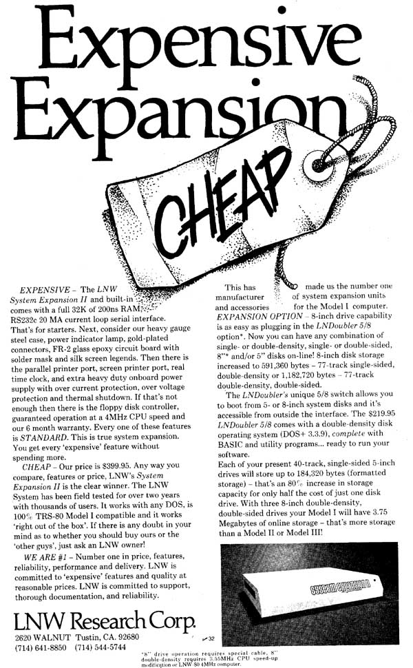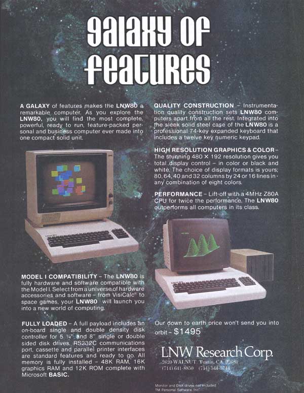 The first advertisement of the LNW 80 computer appeared in the November 1980