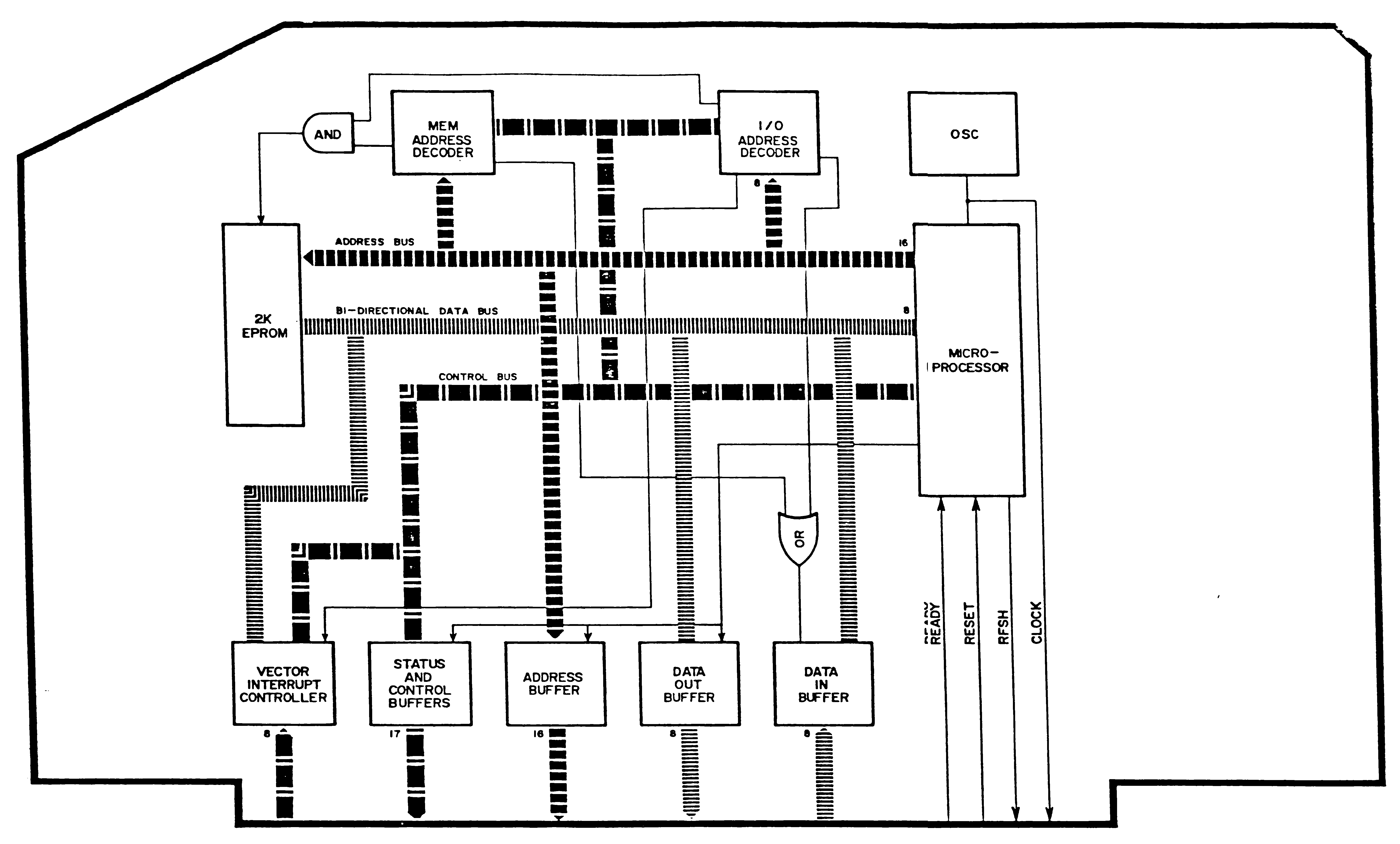 than a few I/O ports to the S-100 bus. Memory is organized as a 16k Byte bank and a 48k Byte bank. A system with