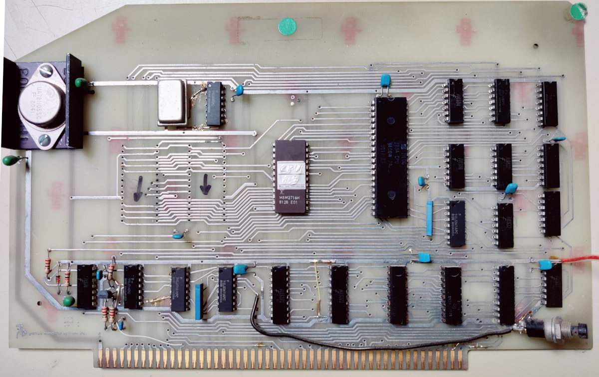 Z80 CPU, two Z80 CTCs (missing on the photo) and a boot EPROM (2 kbyte). The CTCs are used to generate