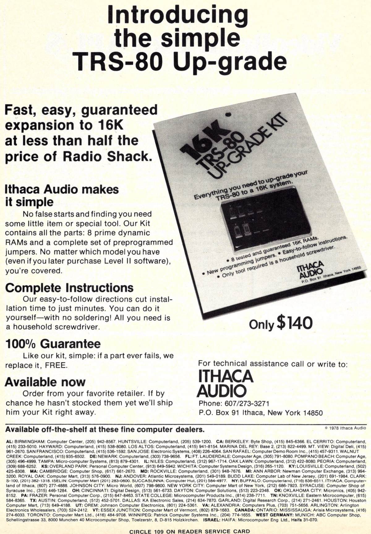 In 1979 PCS was a dealer for the TRS-80 (Model I) RAM upgrade kits from Ithaca Audio.
