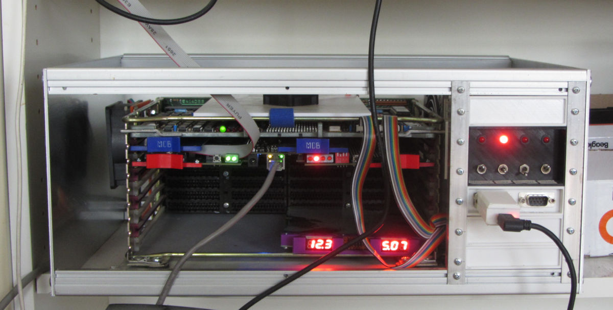 This is the unfinished rack containing the H9275A backplane, a ATX power supply, the control panel and the serial ports (console (SLU1) and SLU2 (can be TU58 port). |