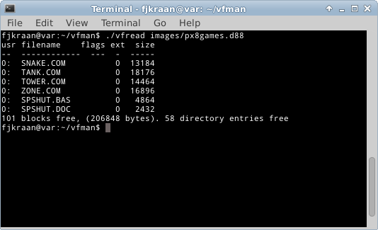 The versions 1.1 to 1.4 add support for the PX-8, and a read and write utility to transfer files between the images and the file system. Due to a bug, only file sizes below 32 kByte are supported by these utilities. These versions of the utilities use functions which make them less ideal for porting to Windows.
