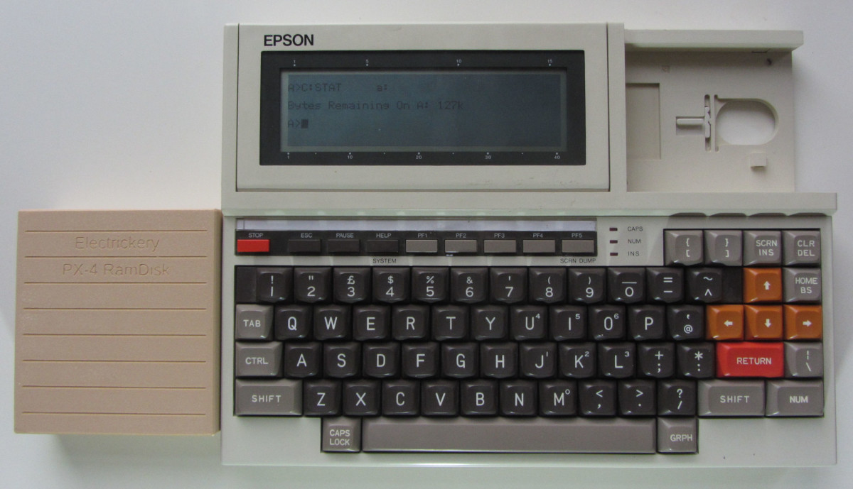 Epson created several RAM Disk units for the PX-8 and PX-4. For the PX-8 the original is a 60 kByte and a 120 kByte RAM Disk. These are so called 'Intelligent' as there is a Z80 processor with firmware which handles request from the PX-8. This is the RAM Disk variant mentioned in the User Manual and Technical Manual. The 'Intelligent' RAM Disk uses I/O ports 80h and 81h.