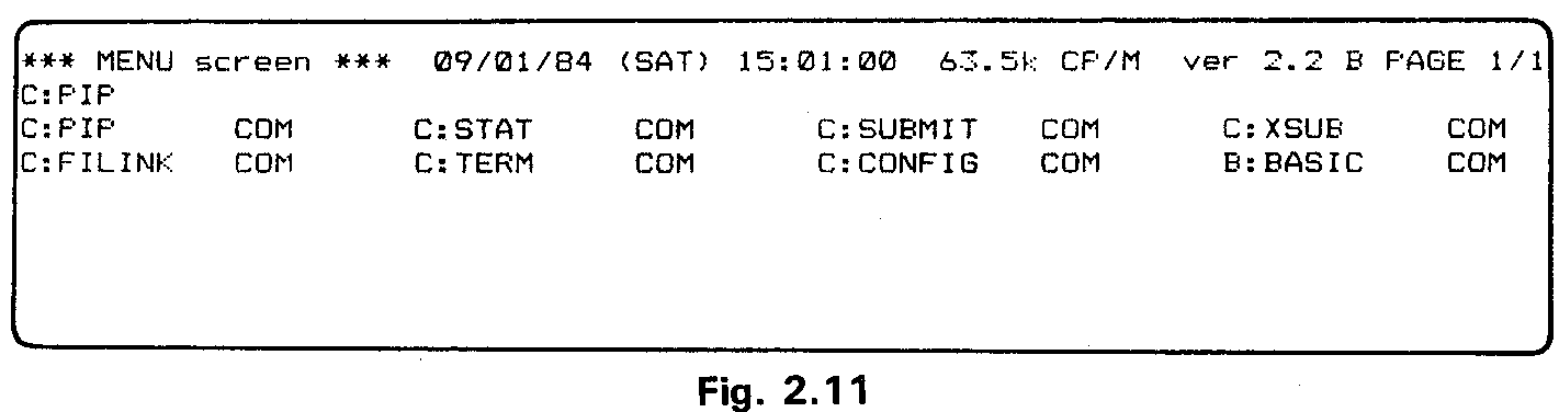 key again and the bottom of the virtual screen, containing the cursor will be shown, with the directory of drive C: and the new CP/M system prompt.