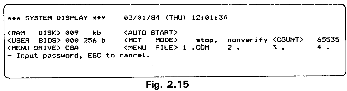 This display image is the same as that displayed after system initialization described in Section 2.2.5.b.