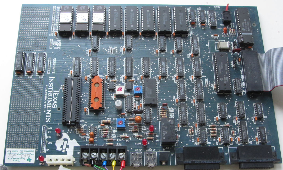 target board, the TMS70C02 processor next to it and the NS810A port extender below it. At the bottom of the picture