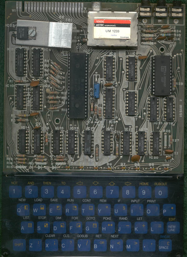 Typical difference with the ZX81: the keyboard is integrated with the circuit board. |