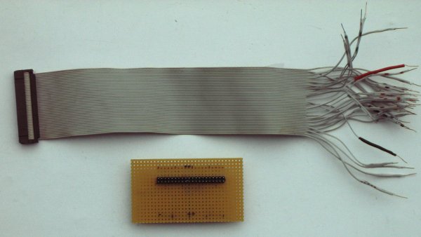As HAL and PAL devices vary wildly in their pinout, no shield with a socket is used. Instead I use an experimenters board and a flatcable terminated with compatible pins. This means that for every type of PAL the reader has to be rewired, but for low volumes this is acceptible. It is also allows easy rearrangement of the pins.