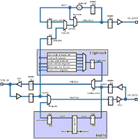 Der gleiche Inkrementierer wird auch zur Erhöhung der Audioadresse herangezogen. Da die Audioadresse nur alle 1/44100 s erhöht werden muß, ist das Timing wesentlich entspannter. Es ist eine zusätzliche äußere Schleife mit Register und Multiplexer vorgesehen. Dieser Multiplexer wurde mit Absicht noch vor den Burst-Multiplexer in den Adreßpfad eingefügt, um die Schleifenverzögerung des Burst-Zählers nicht weiter zu vergrößern.